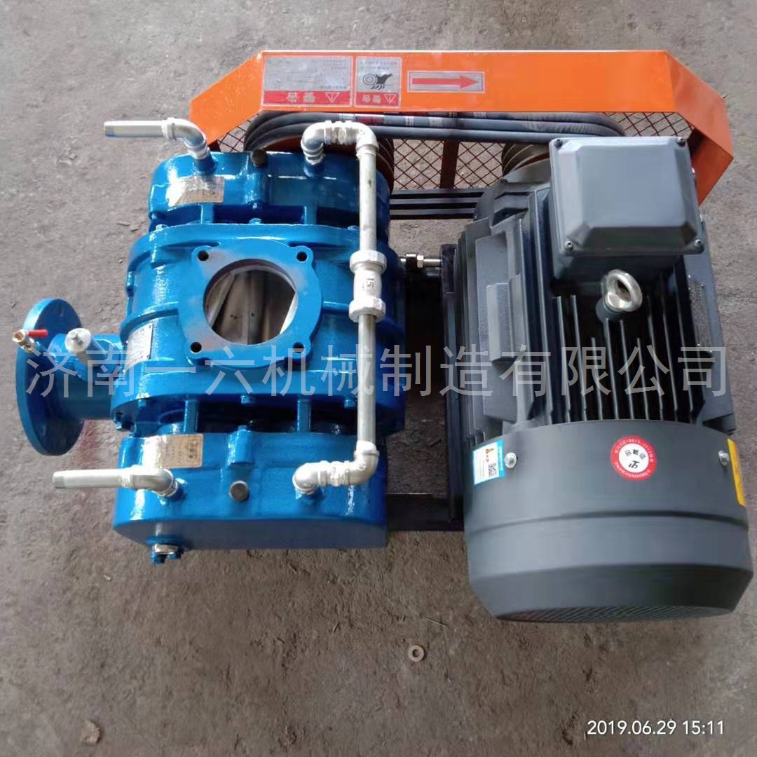 在兩根平相行的軸上設(shè)有三個三葉型葉輪,輪與橢圓形機箱內(nèi)孔面及各葉輪三者之間始終保持微小的間隙,由于葉輪互為反方向勻速旋轉(zhuǎn),使箱體和葉輪所包圍著的一定量的氣體由吸入的一側(cè)輸送到排出的一側(cè)。各支葉輪始終由同步齒輪保持正確的相位,不會出現(xiàn)互相碰觸現(xiàn)象,因而可以高速化,不需要內(nèi)部潤滑,而且結(jié)構(gòu)簡單,運轉(zhuǎn)平穩(wěn),性能穩(wěn)定,適應(yīng)多種用途,已運用于廣泛的領(lǐng)域